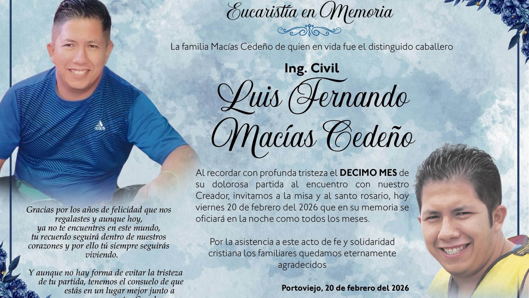 Up next MISA ELOY INTRIAGO – La Voz del Altiplano Published on 20 febrero 2026 Author admin Share article The post has been shared by 0 people. Facebook 0 Twitter 0 Pinterest 0 Mail 0 Deja una respuesta Cancelar la respuestaTu dirección de correo electrónico no será publicada. Los campos obligatorios están marcados con *Comentario * Nombre * Correo electrónico * Web Guarda mi nombre, correo electrónico y web en este navegador para la próxima vez que comente. View Comments (0)