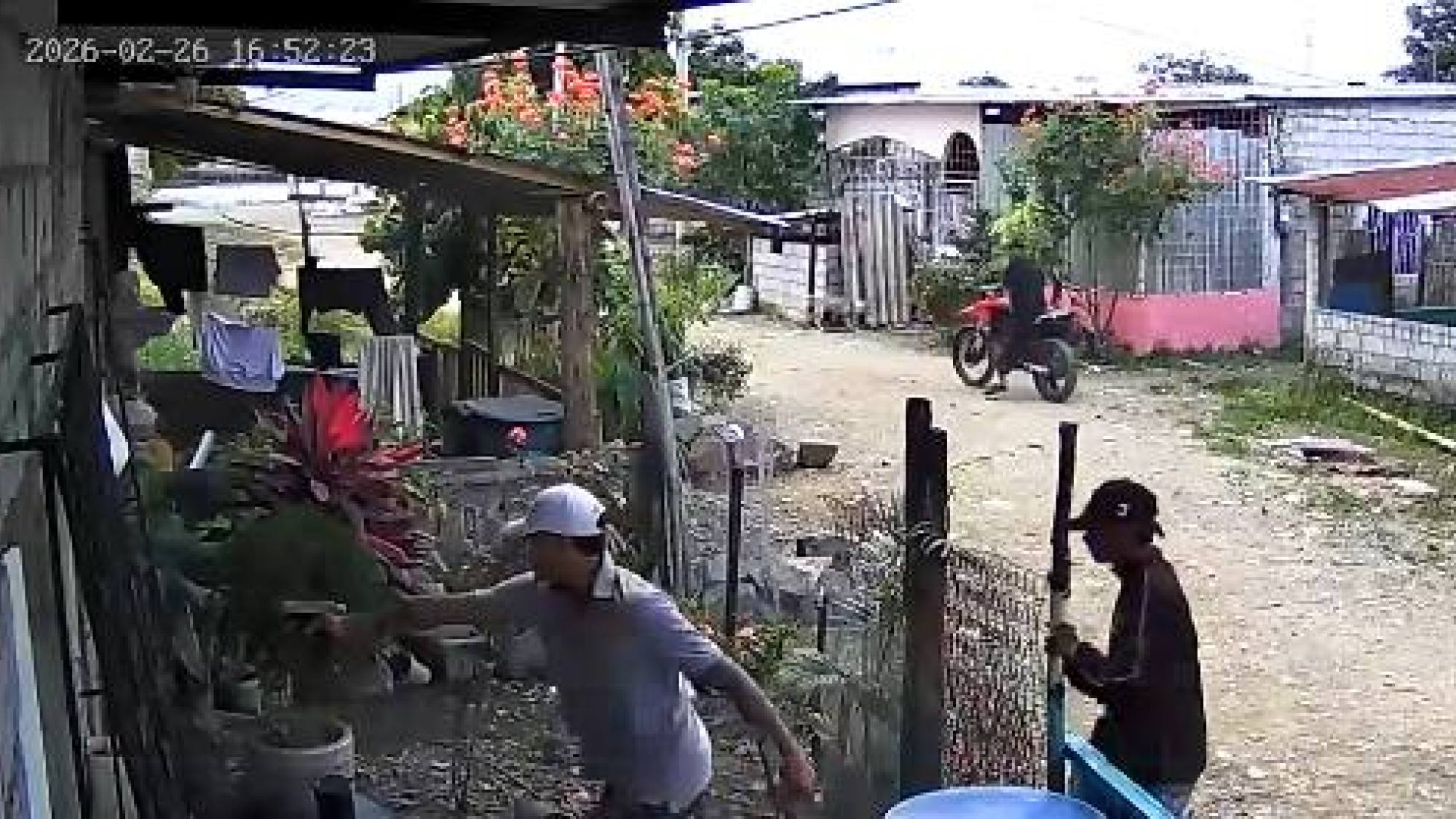 En la grabación se observa que de dentro de la vivienda sale un hombre armado y dispara contra los agresores que huían a pie y en motocicletas.
