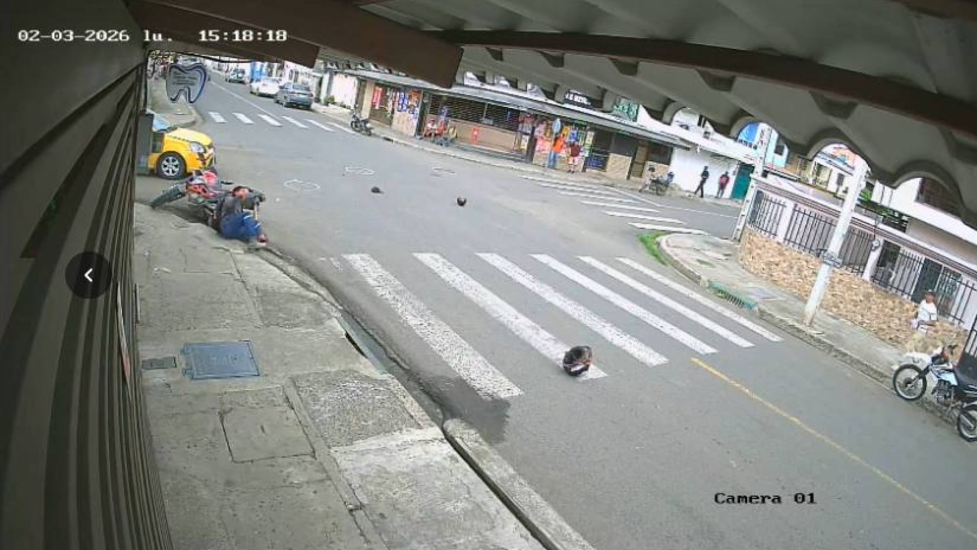 Tras el impacto, los dos ocupantes de la moto quedaron tendidos sobre la vereda.