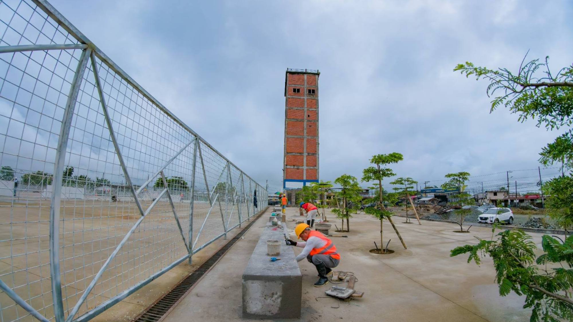 Autoridades municipales realizaron un recorrido de verificación en la obra del parque que se construye en los antiguos silos de Enac, en el sector Unión Popular de El Carmen, para revisar su avance y proyección comunitaria.
