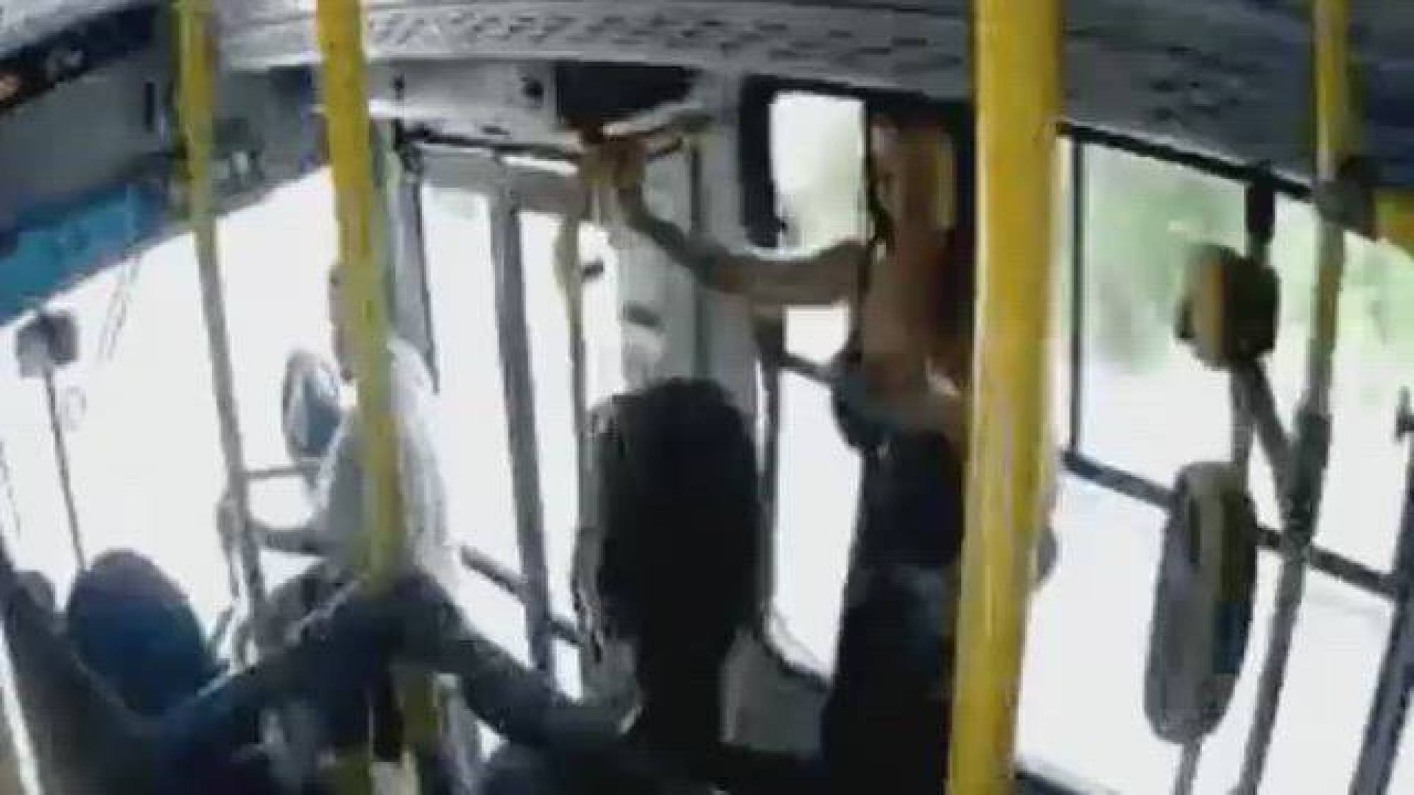 La joven viajaba en la parte delantera del colectivo, apoyada contra una ventana cercana a la puerta y sujetándose de una barra de seguridad.