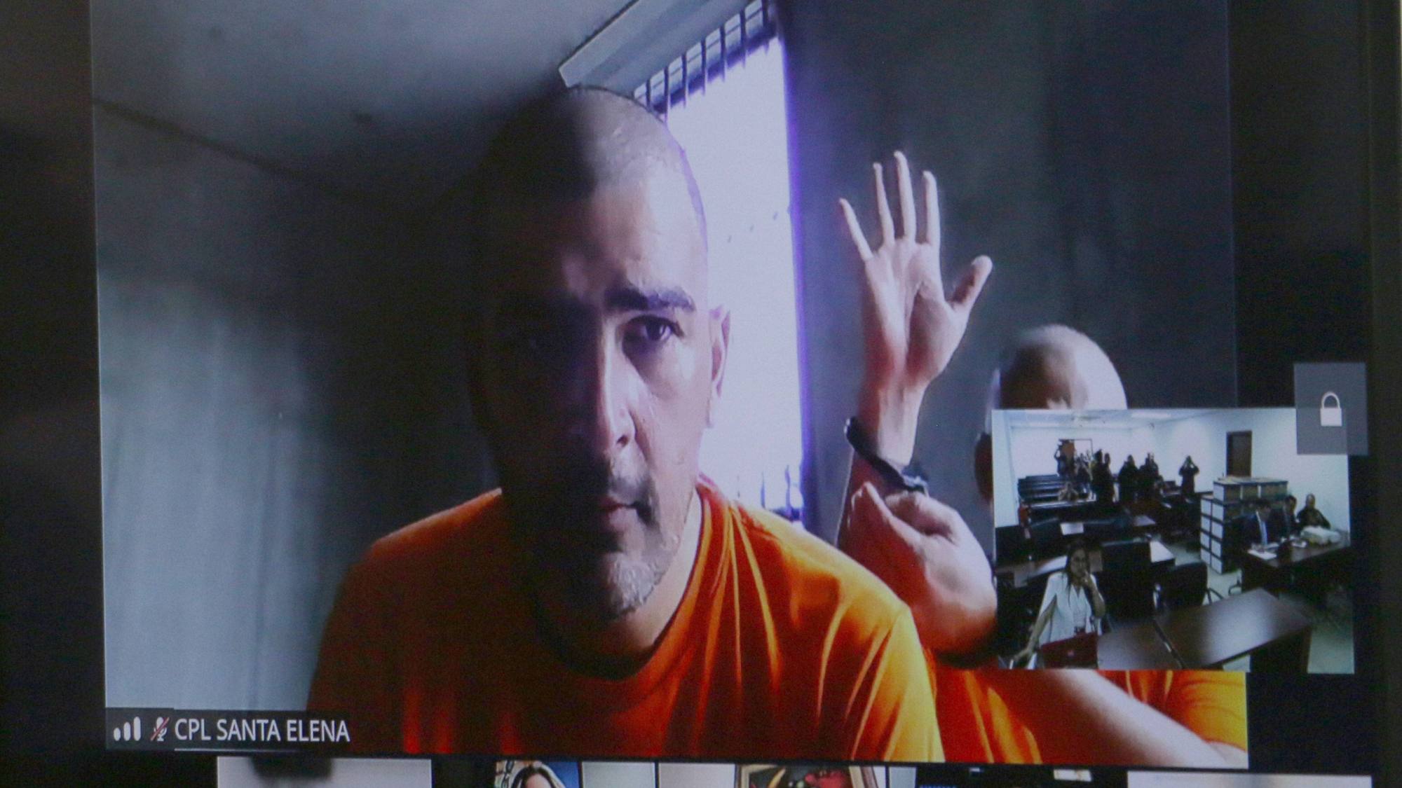 De forma telemática, Aquiles Alvarez, Antonio Alvarez y Xavier Alvarez comparecieron desde el Centro de Privación de Libertad de máxima seguridad El Encuentro, en Santa Elena, con el cabello rapado y uniformes de color naranja.