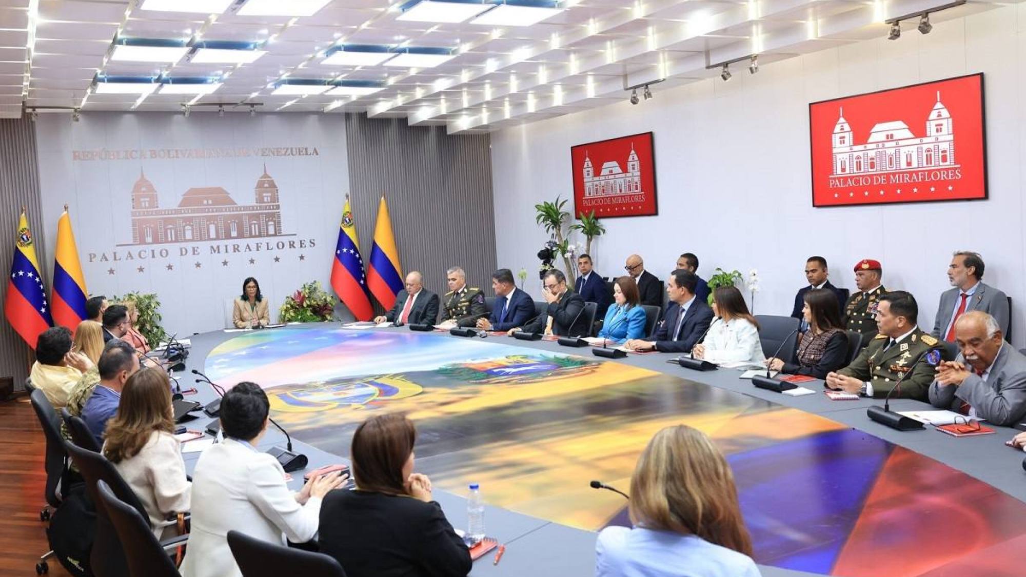 La presidenta encargada de Venezuela, Delcy Rodríguez, encabezó este viernes 13 de marzo una reunión de trabajo en Palacio de Miraflores, en Caracas. Lo hizo junto a ministros de Venezuela y Colombia de las áreas de Exteriores, Defensa, Comercio y Energía.