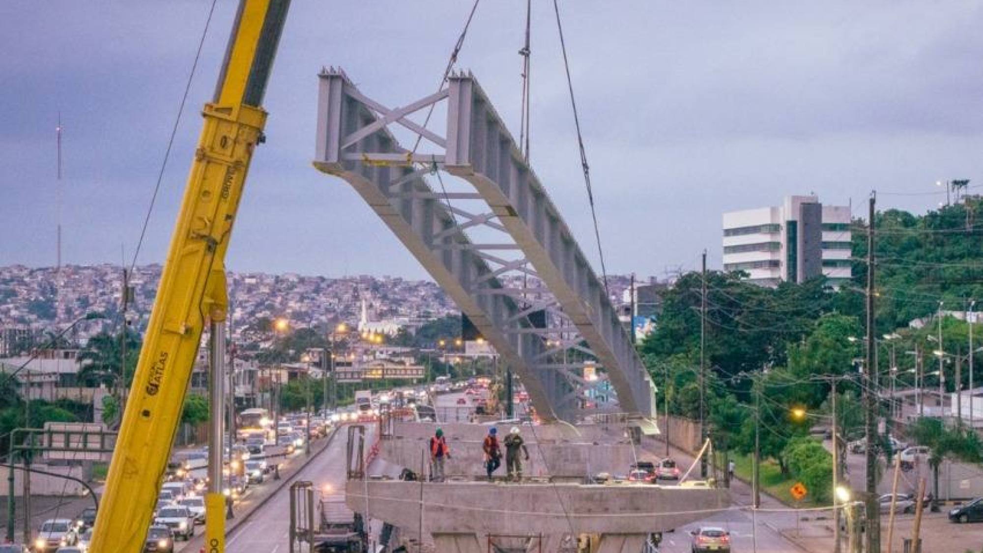 La construcción del paso elevado en la avenida del Bombero, en el oeste de Guayaquil, alcanzó un nuevo hito este fin de semana con el inicio del montaje de vigas que formarán parte de la estructura principal del viaducto. Esta etapa representa uno de los procesos más relevantes dentro del cronograma de la obra, que busca mejorar la movilidad en uno de los sectores con mayor flujo vehicular de la ciudad.