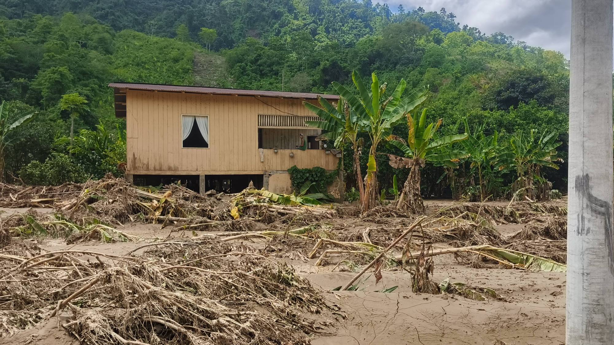 En el terreno apenas permanece en pie el área de la cocina. El resto de la vivienda desapareció entre lodo, palizadas y escombros.