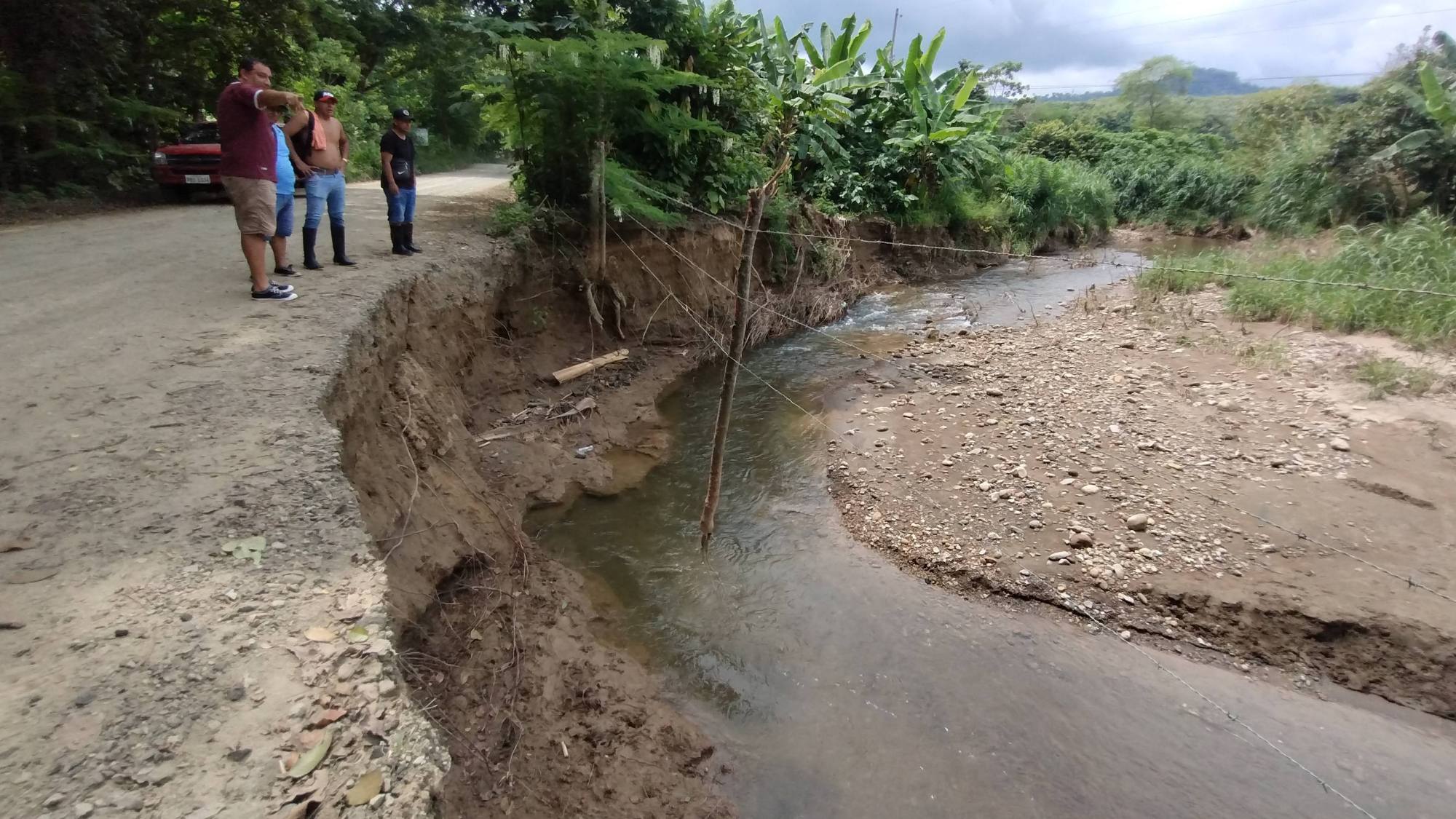 El problema de socavones en vías cercanas a ríos es recurrente en zonas rurales de Manabí. En estos casos, la combinación de lluvias, aumento del caudal y falta de obras de contención acelera el deterioro.