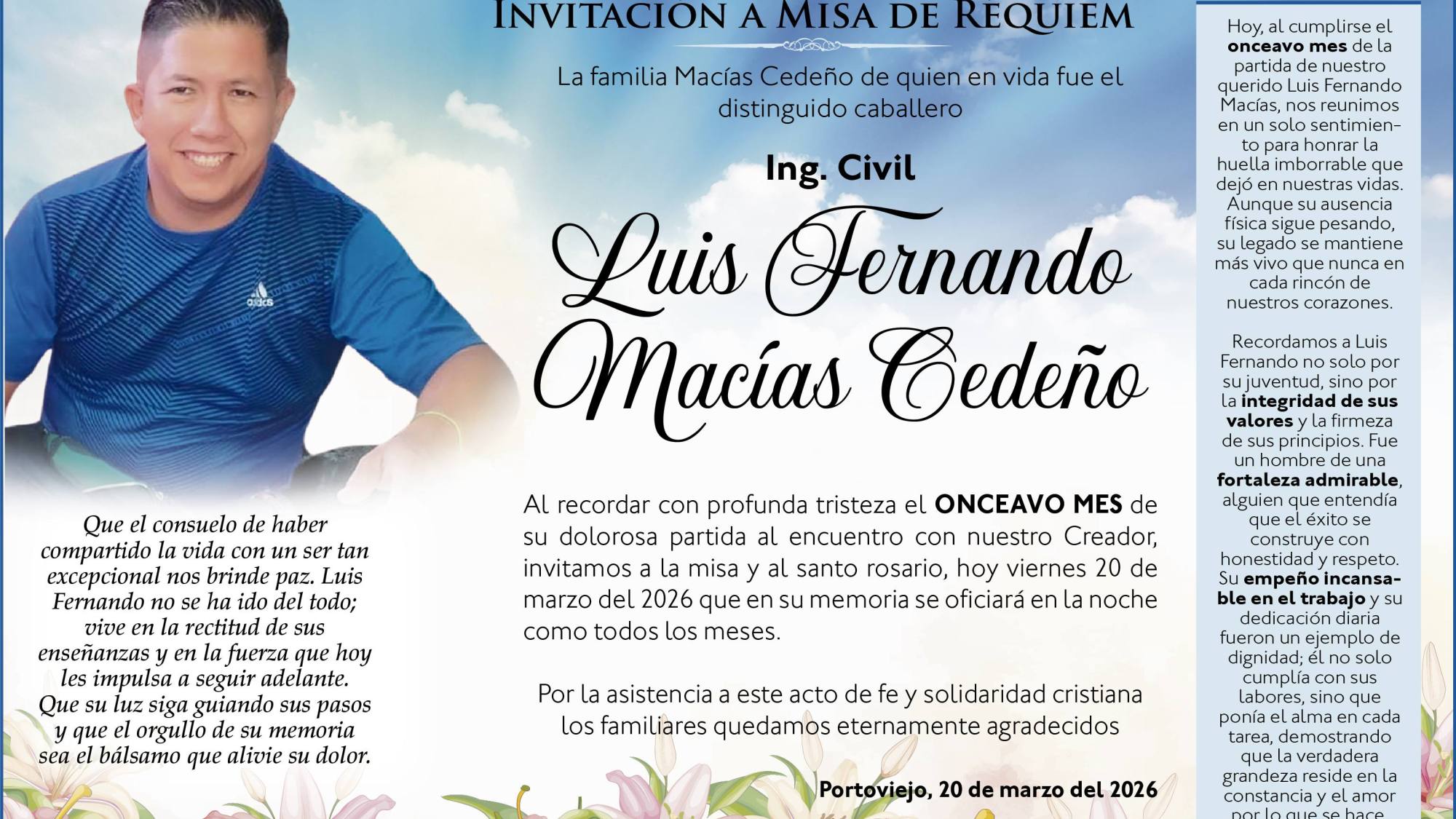 Up next SEPELIO MARIA DOLORES MARIN ALAVA – La Voz del Altiplano Published on 20 marzo 2026 Author admin Share article The post has been shared by 0 people. Facebook 0 Twitter 0 Pinterest 0 Mail 0 Deja una respuesta Cancelar la respuestaTu dirección de correo electrónico no será publicada. Los campos obligatorios están marcados con *Comentario * Nombre * Correo electrónico * Web Guarda mi nombre, correo electrónico y web en este navegador para la próxima vez que comente. View Comments (0)