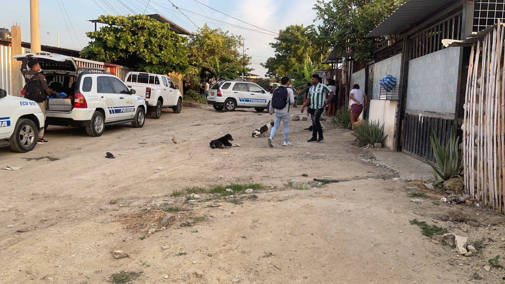 El primer hecho de sangre se reportó en el barrio Monterrey del cantón Montecristi, específicamente en el portal de una vivienda familiar. Varios sujetos armados dispararon contra un ciudadano quien quedó tendido en el suelo mientras sus allegados solicitaban auxilio de forma desesperada.