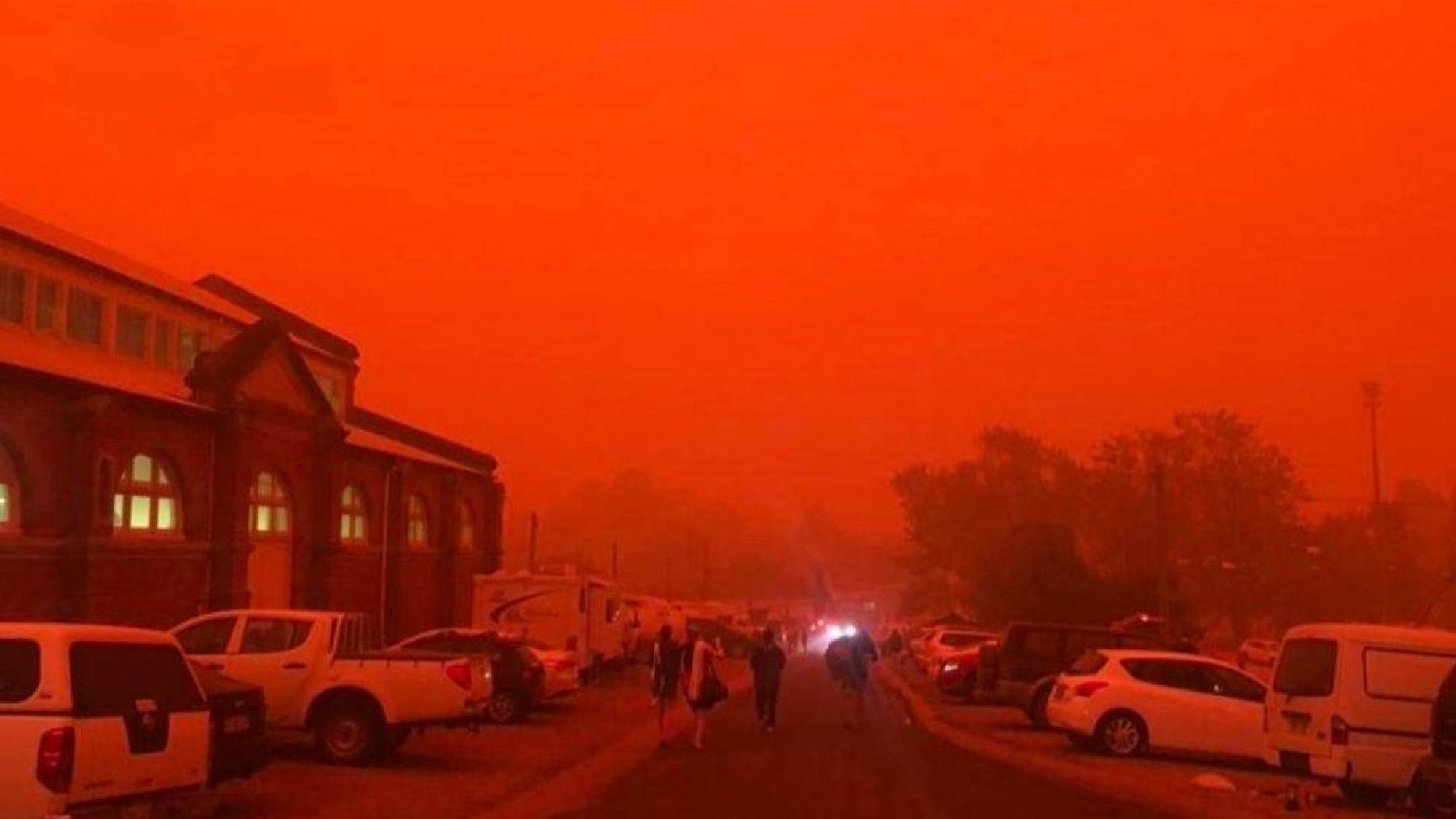 El ciclón Narelle provocó este sábado un fenómeno atmosférico en el noroeste de Australia, donde el cielo se tornó rojizo debido a los fuertes vientos y partículas en suspensión.