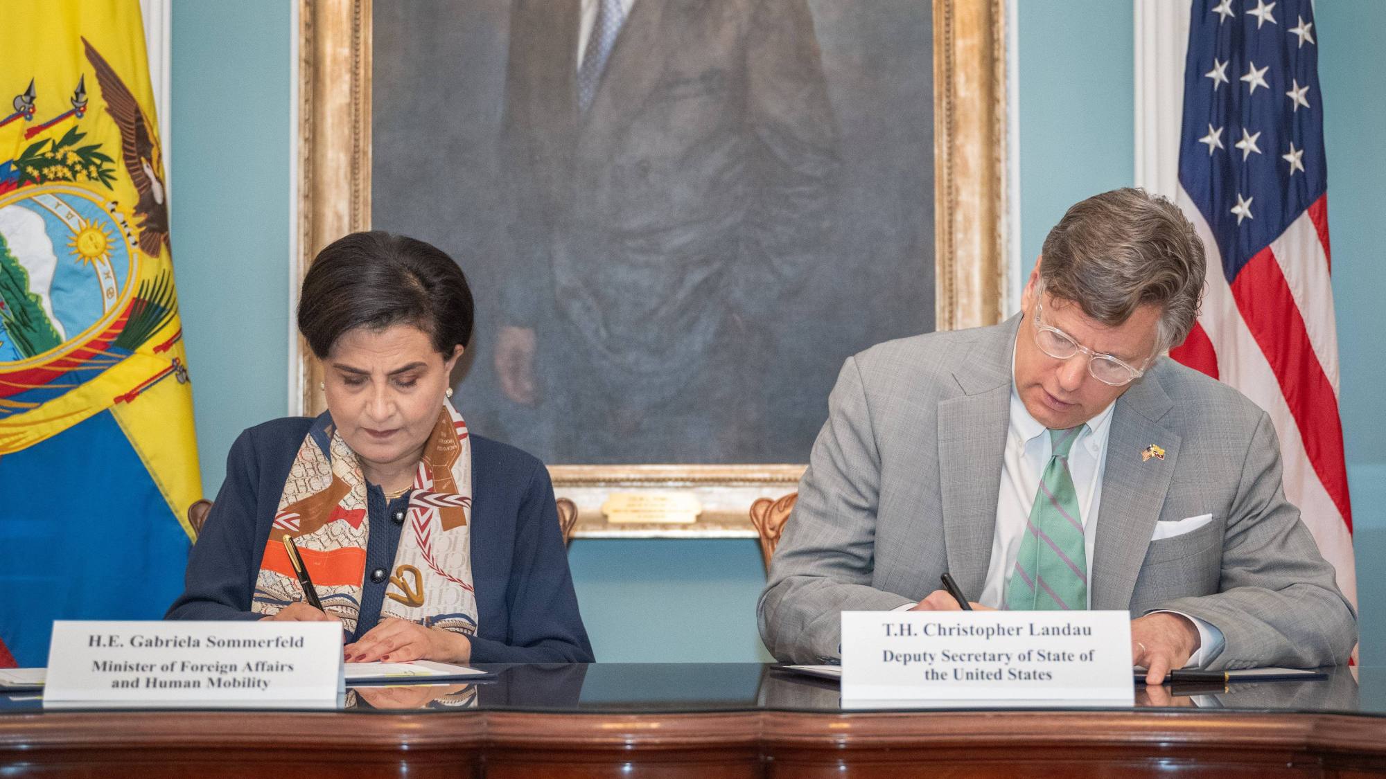 El Departamento de Estado norteamericano informó el hecho mediante un comunicado oficial detallado. El documento registra la firma del vicesecretario Christopher Landau. También aparece la rúbrica de la ministra Gabriela Sommerfeld por parte de Ecuador.