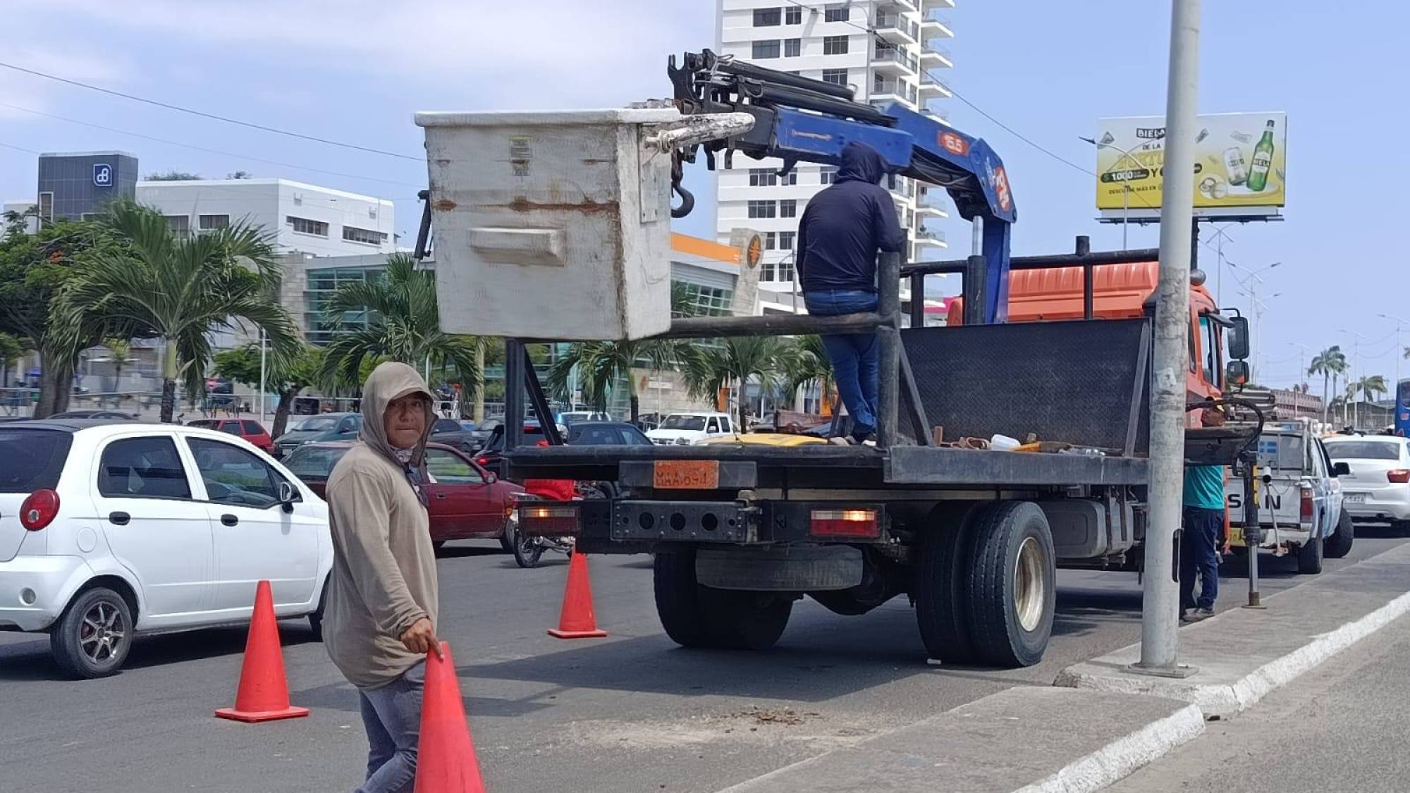 Jorge Santos, conductor que transitaba por la zona, valoró la rapidez de la respuesta municipal, aunque manifestó molestias momentáneas por el cierre parcial de carriles. «Es necesario que lo arreglen bien para que no vuelva a pasar. El Malecón debe estar siempre iluminado y seguro», comentó. Sin embargo, también sugirió que hacerlo en la noche afectaría menos al tránsito.