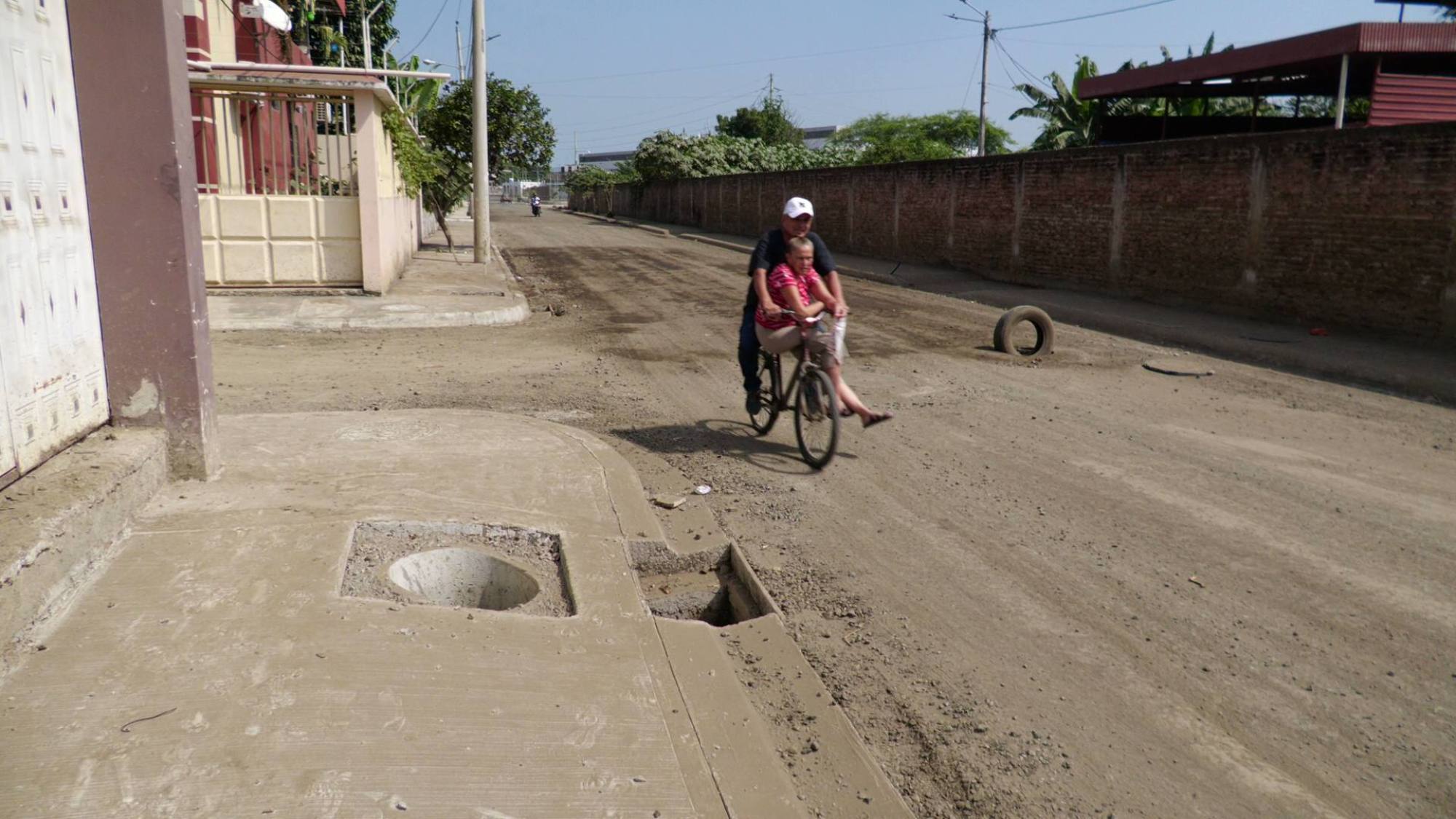 El tramo restante permanece sin asfalto, y también se evidencian pendientes como la colocación de tapas en algunos pozos del sistema de alcantarillado.