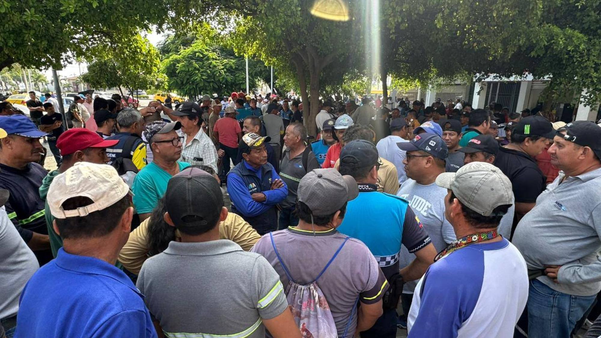 Este lunes 6 de abril de 2026, los integrantes del Sindicato de Obreros Municipales de Manta iniciaron un plantón frente al palacio municipal debido al impago de los salarios de febrero y marzo, además del décimo cuarto sueldo.