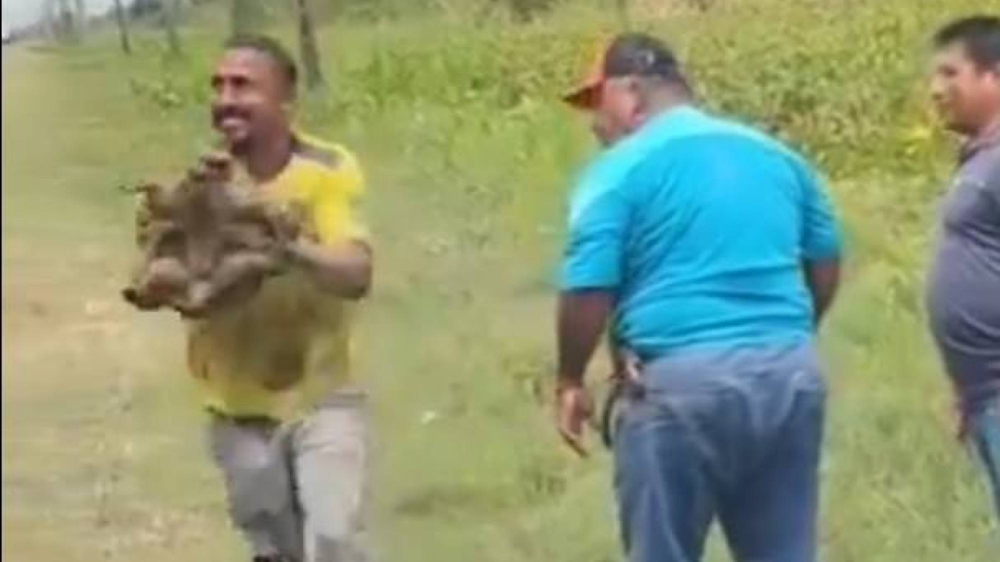 Un conductor que circulaba por la zona grabó el suceso e interpeló a los sujetos, recordándoles que los animales silvestres no son mascotas y deben permanecer en su entorno. Ante la petición, uno de los involucrados alegó que pretendía llevarse el ejemplar para que «los niños jueguen».