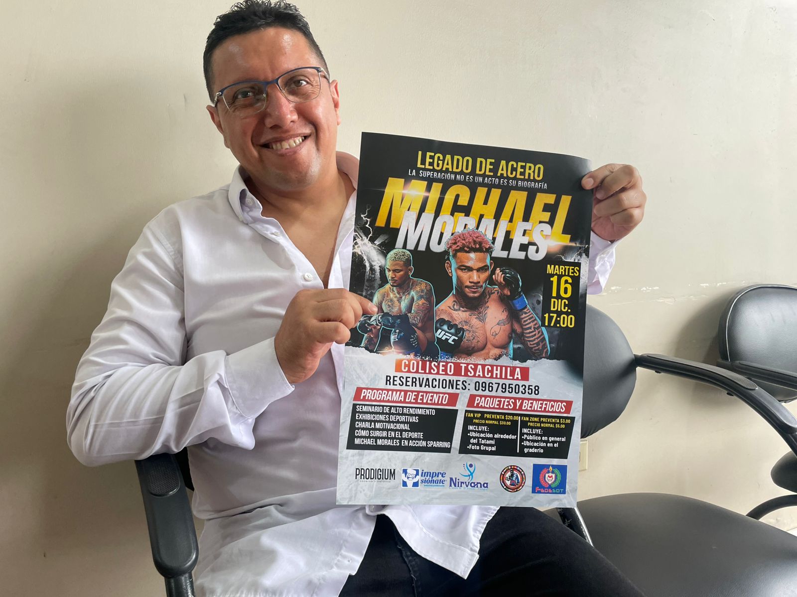 Michael Morales, atleta ecuatoriano de la UFC, participará este martes 16 de diciembre, a las 17:00, en el Coliseo Tsáchila, en Santo Domingo, en una jornada deportiva abierta al público que combinará seminario, exhibiciones y actividades motivacionales para impulsar el deporte.