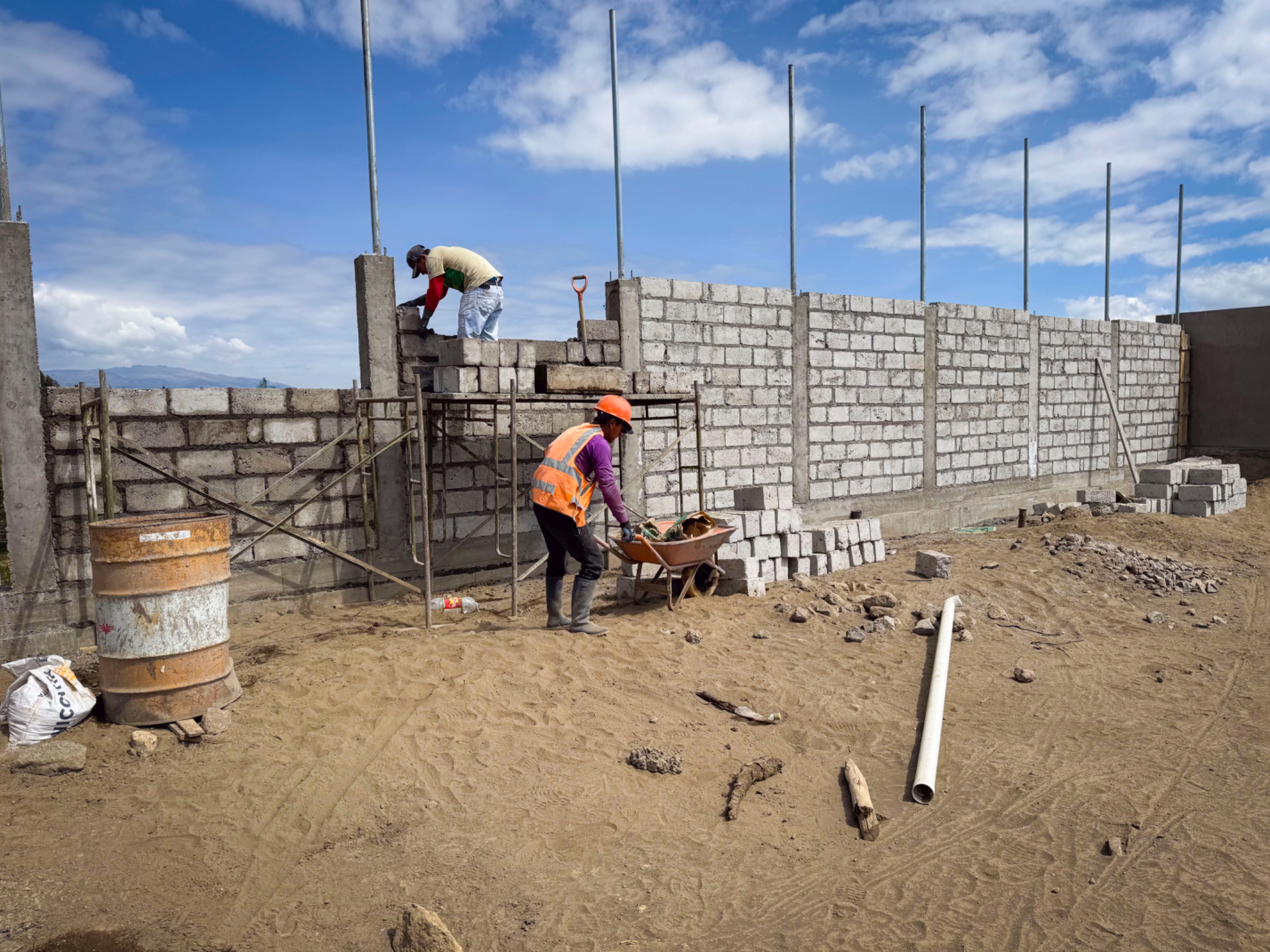 Los trabajos incluyeron la conformación de plataformas y la construcción de muros de hormigón armado de aproximadamente 100 metros de longitud y cinco metros de profundidad, diseñados para brindar estabilidad y sostener la infraestructura del estadio. El contrato principal contempló excavaciones, rellenos y fundición de muros, mientras que, como parte del contrato complementario, se ejecuta actualmente el cerramiento del escenario deportivo, conformado por mampostería de bloque y malla, el cual registra un avance del 52 %.
