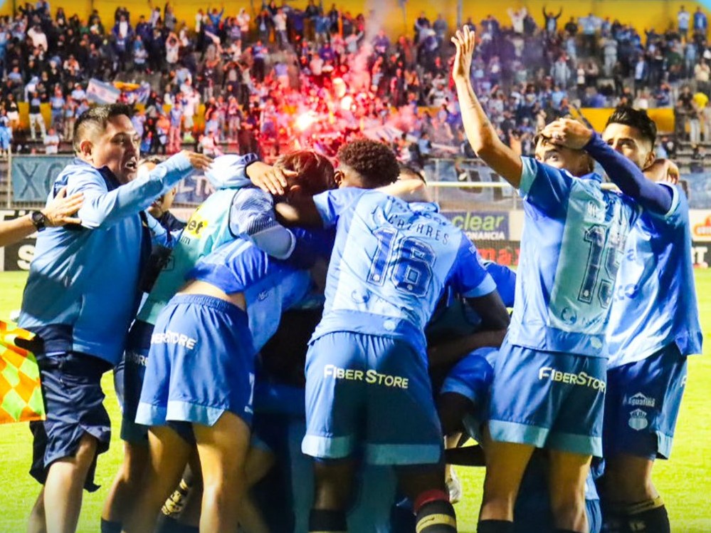 Macará celebra su victoria ante Aucas en la última fecha del 2025, resultado que selló una de las mejores campañas de su historia y lo dejó como el mejor del hexagonal final. (Foto @Macara_Oficial)