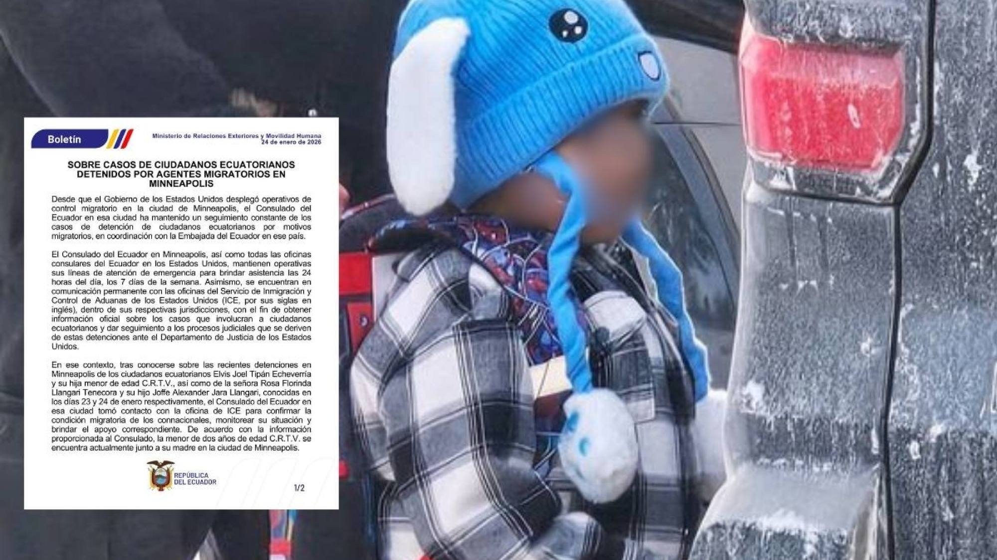 El Gobierno de Ecuador solicitó información formal a Estados Unidos tras la detención del niño ecuatoriano Liam Conejo Ramos, de cinco años, durante un operativo ejecutado por el servicio federal antiinmigración, el ICE, en la ciudad de Minneapolis, Minnesota.