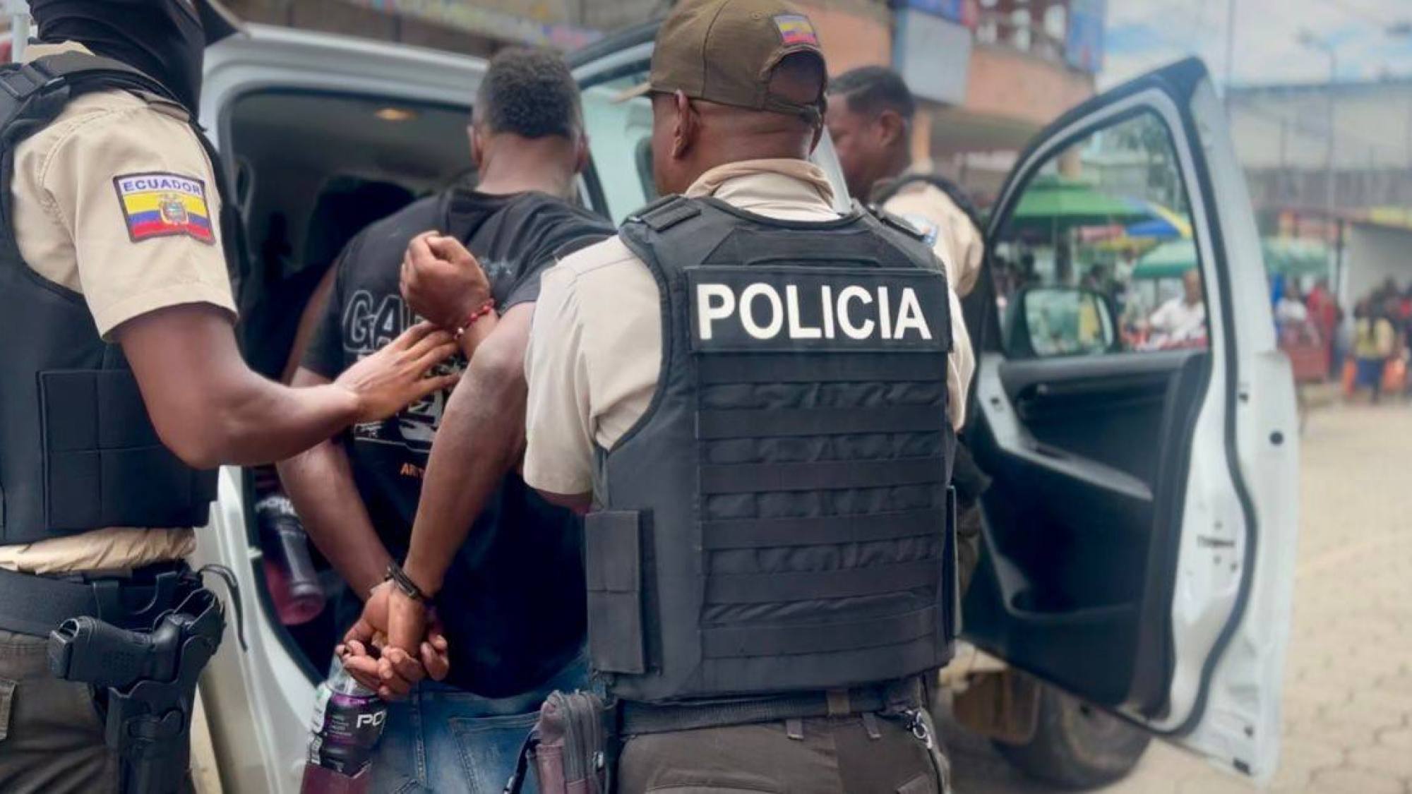 Brayan V., alias «El Chino», su conviviente Karol Ch., Adolfo A., alias «Morenillo» o «El Niño», y José M., alias «El Gato», fueron privados de libertad con prisión preventiva por el delito de extorsión. Esto tras ser aprehendidos en flagrancia el 26 de enero de 2026 en Esmeraldas.