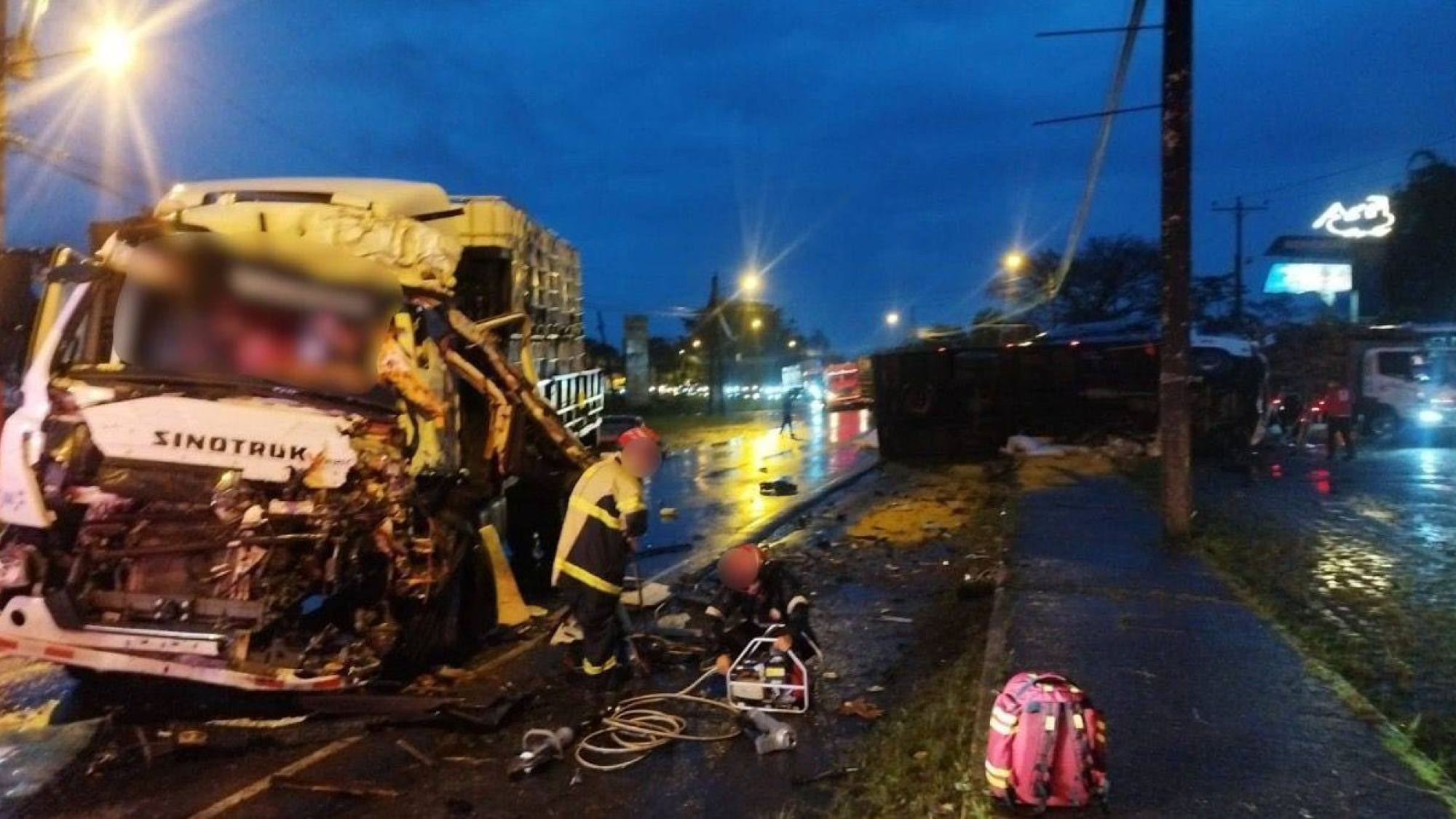 De acuerdo con la información preliminar proporcionada por los organismos de emergencia de Santo Domingo, el accidente involucró dos camiones y un vehículo liviano. Producto del impacto, uno de los camiones quedó completamente volcado sobre la calzada, lo que ocasionó el derrame de varios sacos que transportaba, presuntamente carga balanceada. Las causas exactas del siniestro aún deberán ser determinadas por la Policía Nacional y la SIAT.