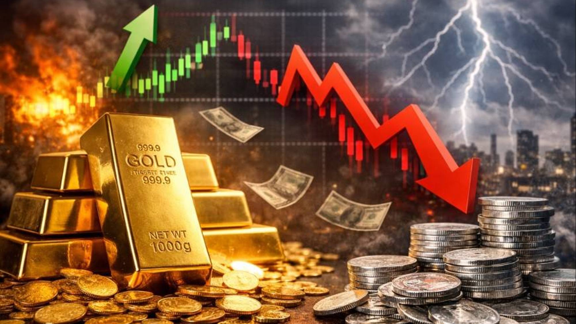 El fenómeno no se limitó al oro. La plata, otro metal precioso considerado refugio, también registró una fuerte caída.