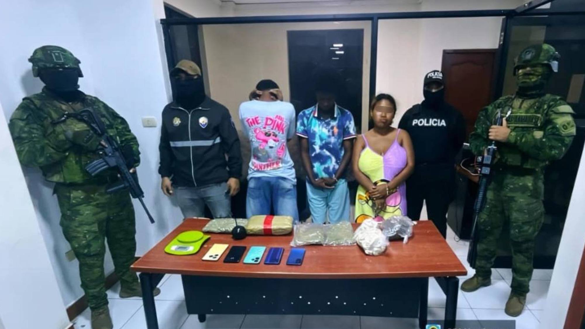 En el lugar fueron aprehendidos tres ciudadanos, identificados como Edwin Aliri C., alias «Naisan»; Carlos Richard T. Q., alias «Richard»; y Nathaly Ximena T. Q. Las autoridades aclararon que los aprehendidos mantienen su presunción de inocencia mientras se desarrollan las investigaciones.