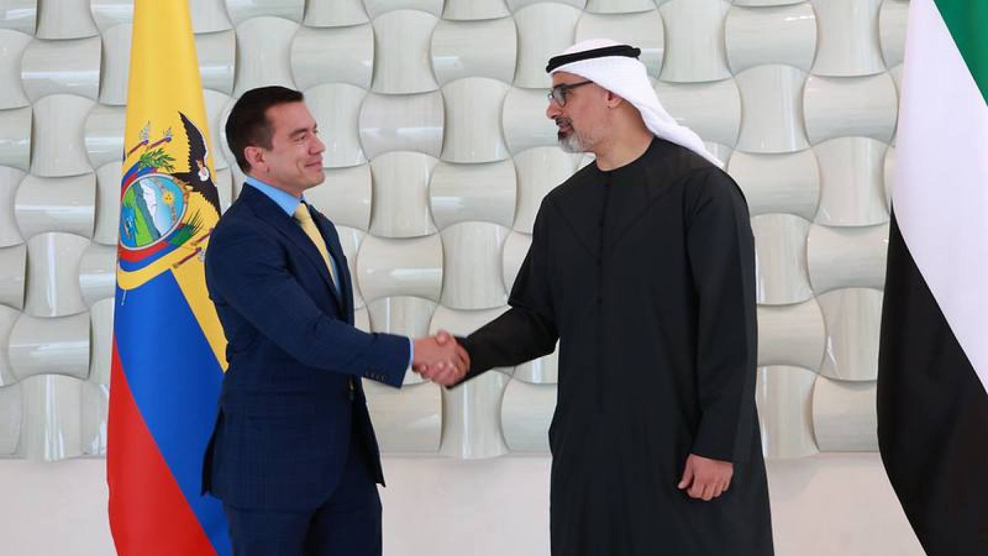 Daniel Noboa mantuvo una reunión oficial con el jeque Mohamed Bin Zayed Al Nahyan, presidente de Emiratos Árabes Unidos, este martes 3 de febrero de 2026, en Abu Dabi.