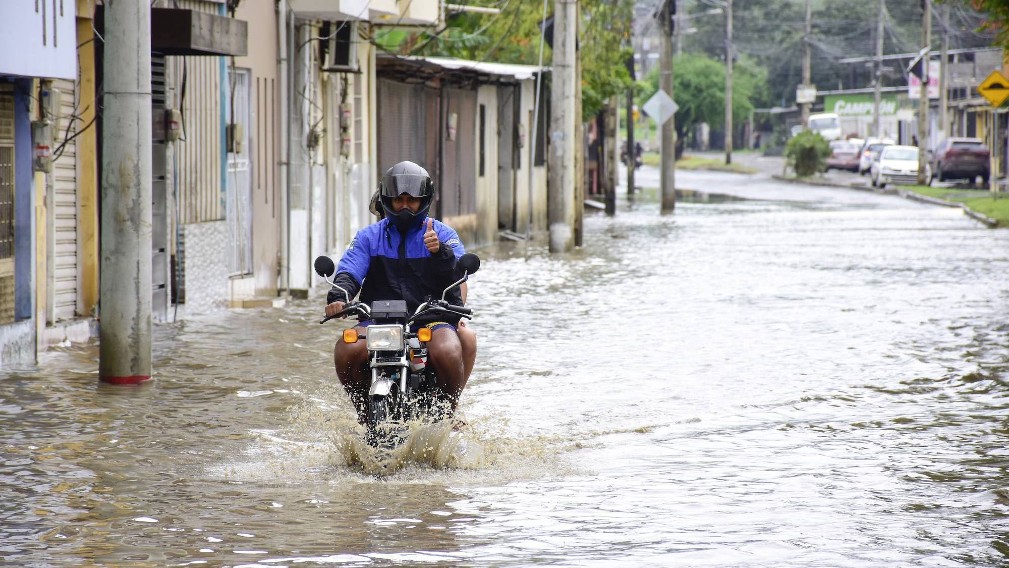 Varios sectores de Portoviejo reportaron inundaciones momentáneas en varias calles y avenidas de sectores concurridos tras una corta y fuerte lluvia. Uno de las zonas afectadas es la calle de ingreso a la ciudadela Las Orquídeas, a la altura de la avenida Del Ejército.