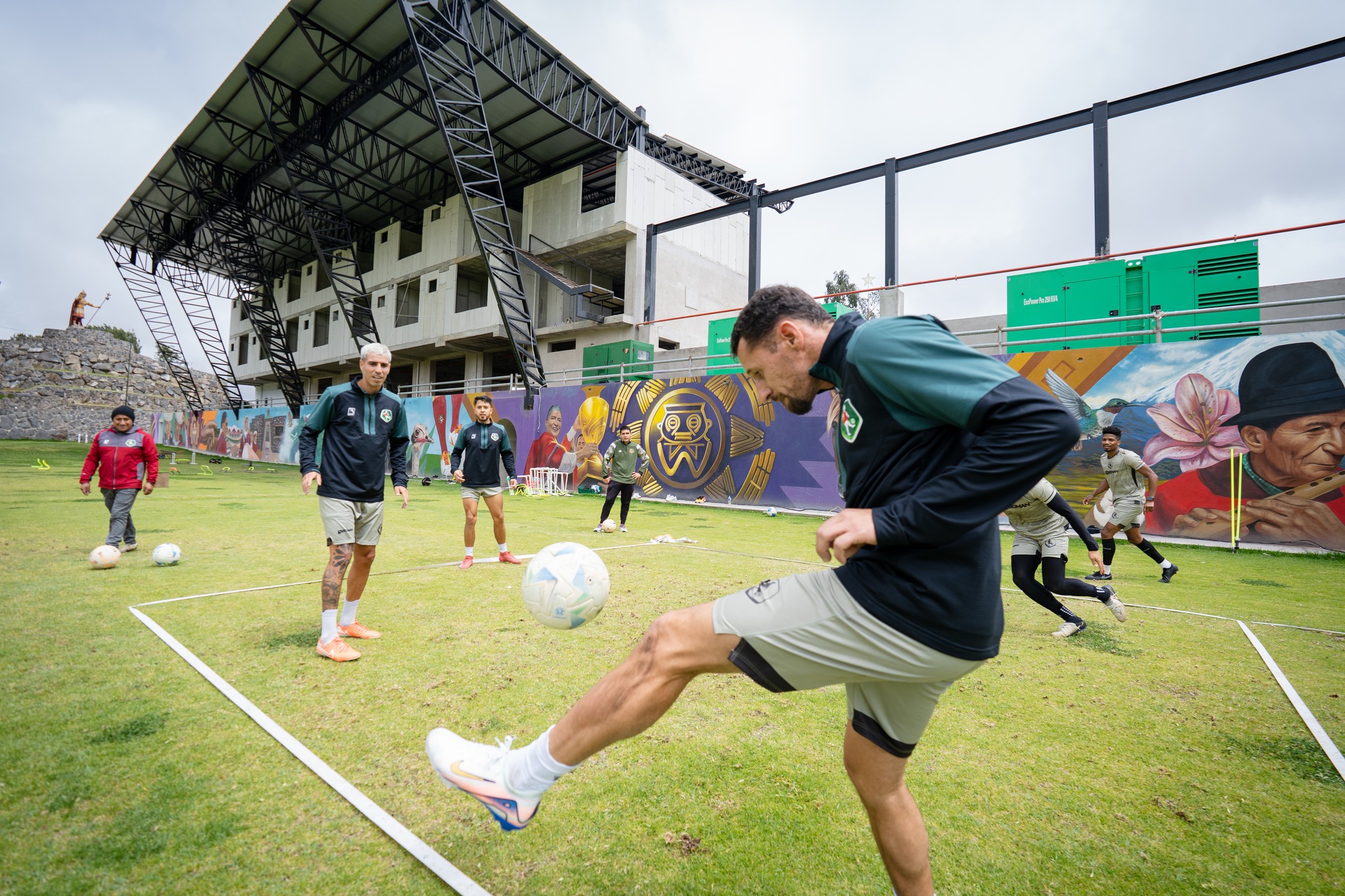El centro delantero uruguayo Nicolás Dibble es uno de los refuerzos de Mushuc Runa SC para la presente temporada y se adapta a sus nuevos compañeros de equipo y lo que el cuerpo técnico busca durante la pretemporada, en el Complejo Deportivo de Santa Lucía.