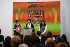 Además, la ministra Vallejo agregó que “debe ser un compromiso de todos y todas que con alegría enfrentemos la desinformación, que es peligrosa, es una amenaza que se mueve, además, por muchos discursos de odio, y que busca generar mayor desconfianza”.
