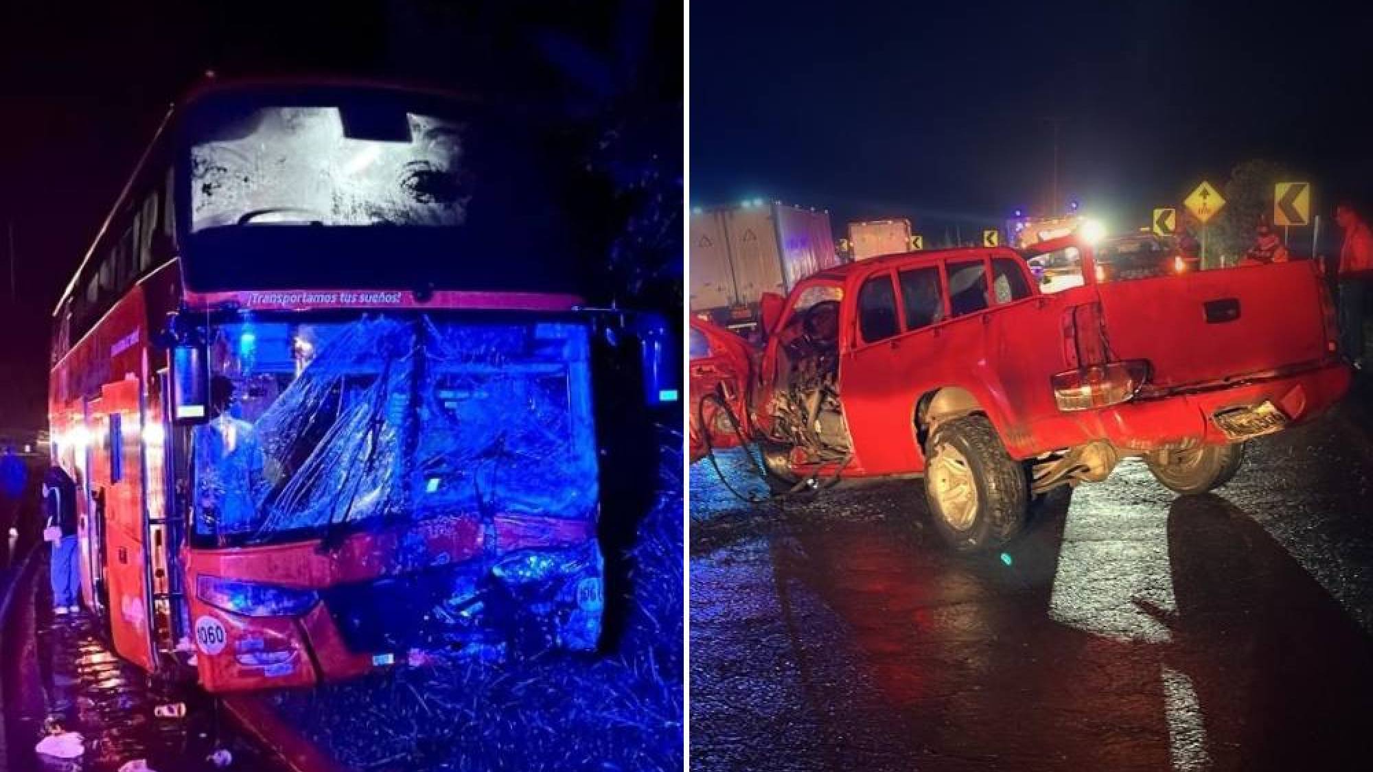 El incidente ocurrió aproximadamente a la 01h00, a la altura del kilómetro 55 de la vía, donde chocaron un bus de transporte interprovincial y una camioneta.