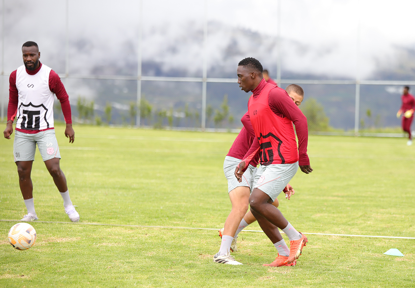 En la carpa de Técnico Universitario, los entrenamientos se realizan en un ambiente de positivismo tras la victoria del partido anterior y el equipo se prepara para recibir a Mushuc Runa SC y lo hace con trabajos, en el Complejo Deportivo de Quillán Loma.