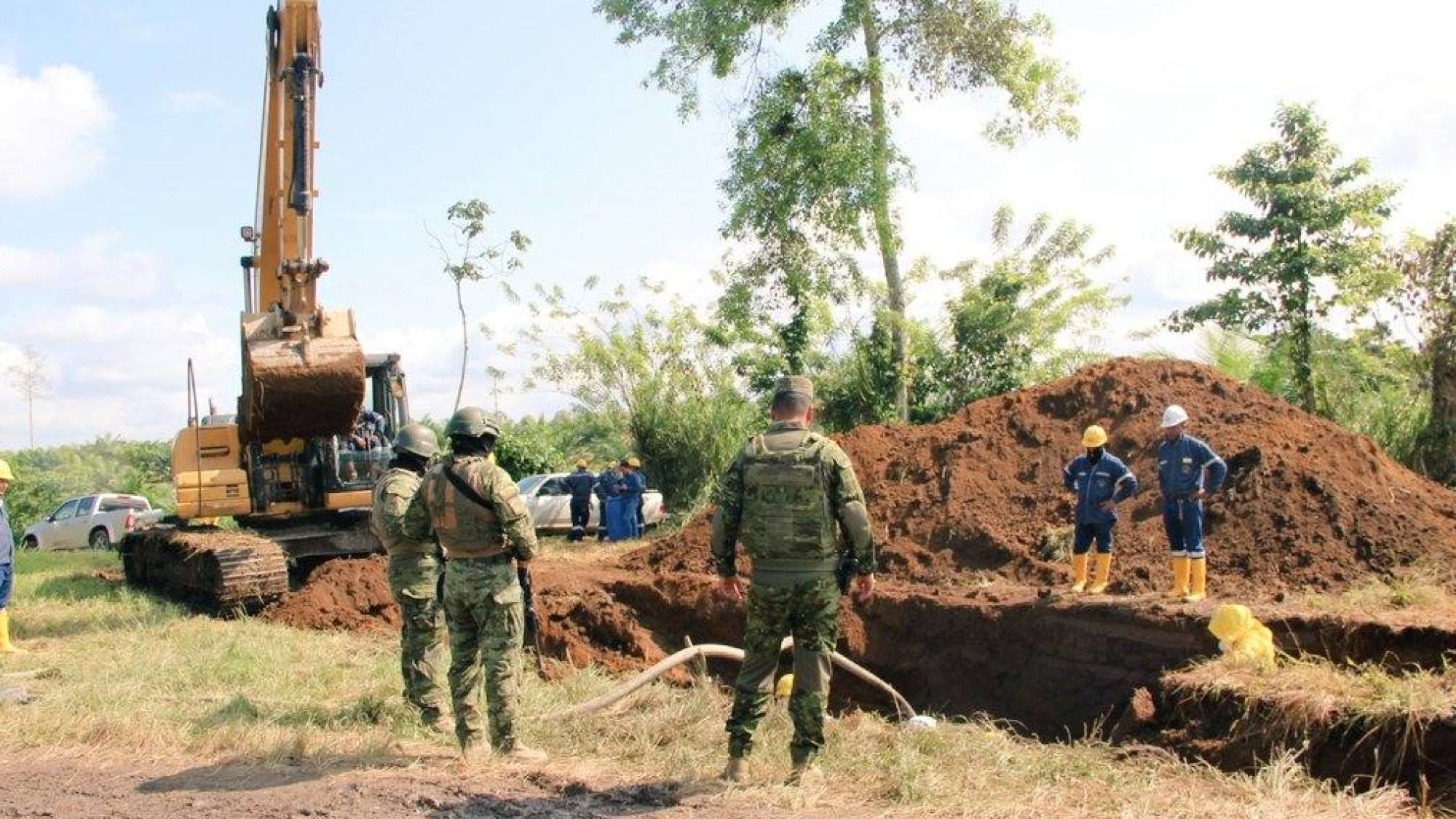Tras confirmar la perforación, los militares coordinaron de inmediato con técnicos de Petroecuador. El objetivo fue ejecutar los trabajos de remediación y sellado del ducto afectado.
