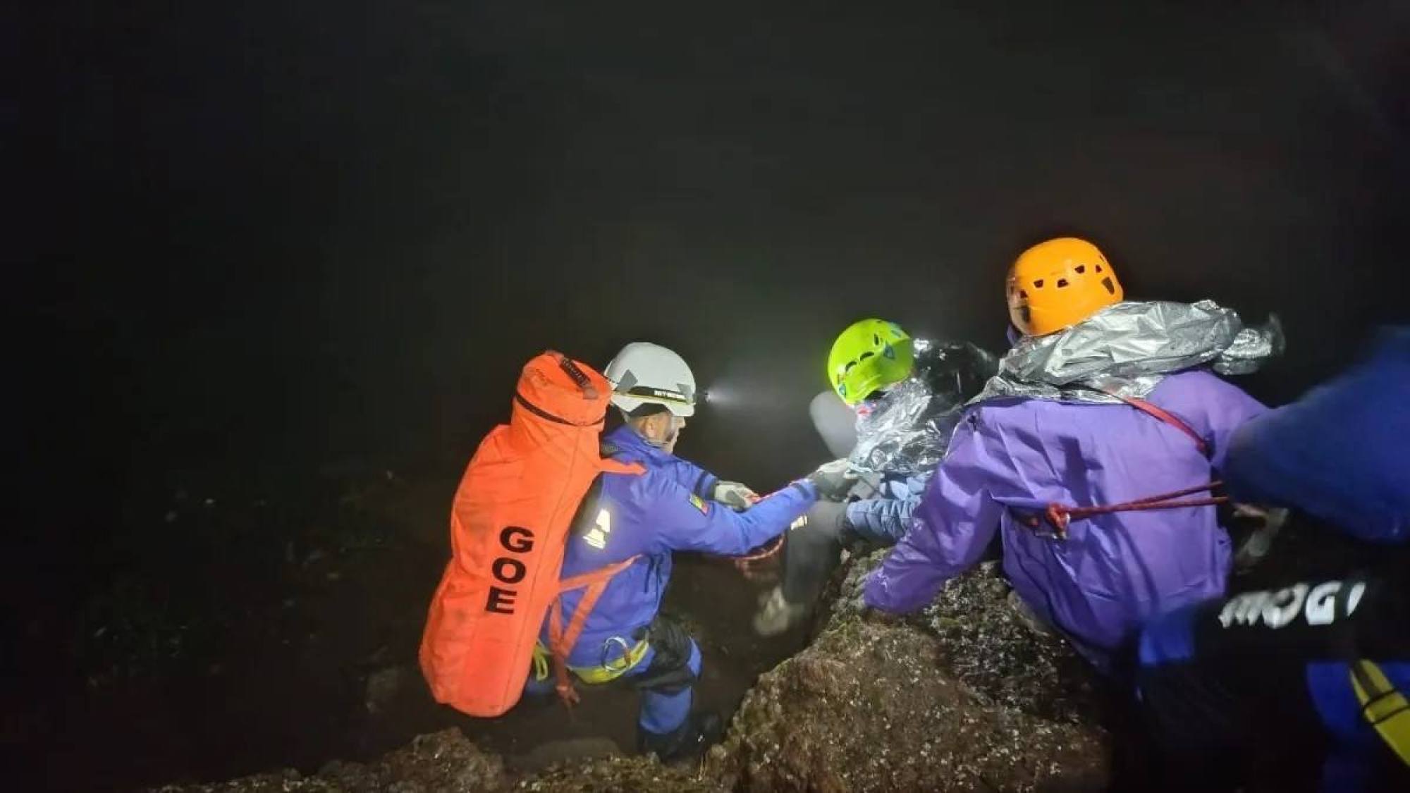 Personal del Grupo de Operaciones Especiales (GOE) y el Cuerpo de Bomberos Mejía rescataron a seis montañistas que fueron impactados por un rayo la tarde del domingo 15 de febrero de 2026 en el volcán El Corazón, provincia de Pichincha.