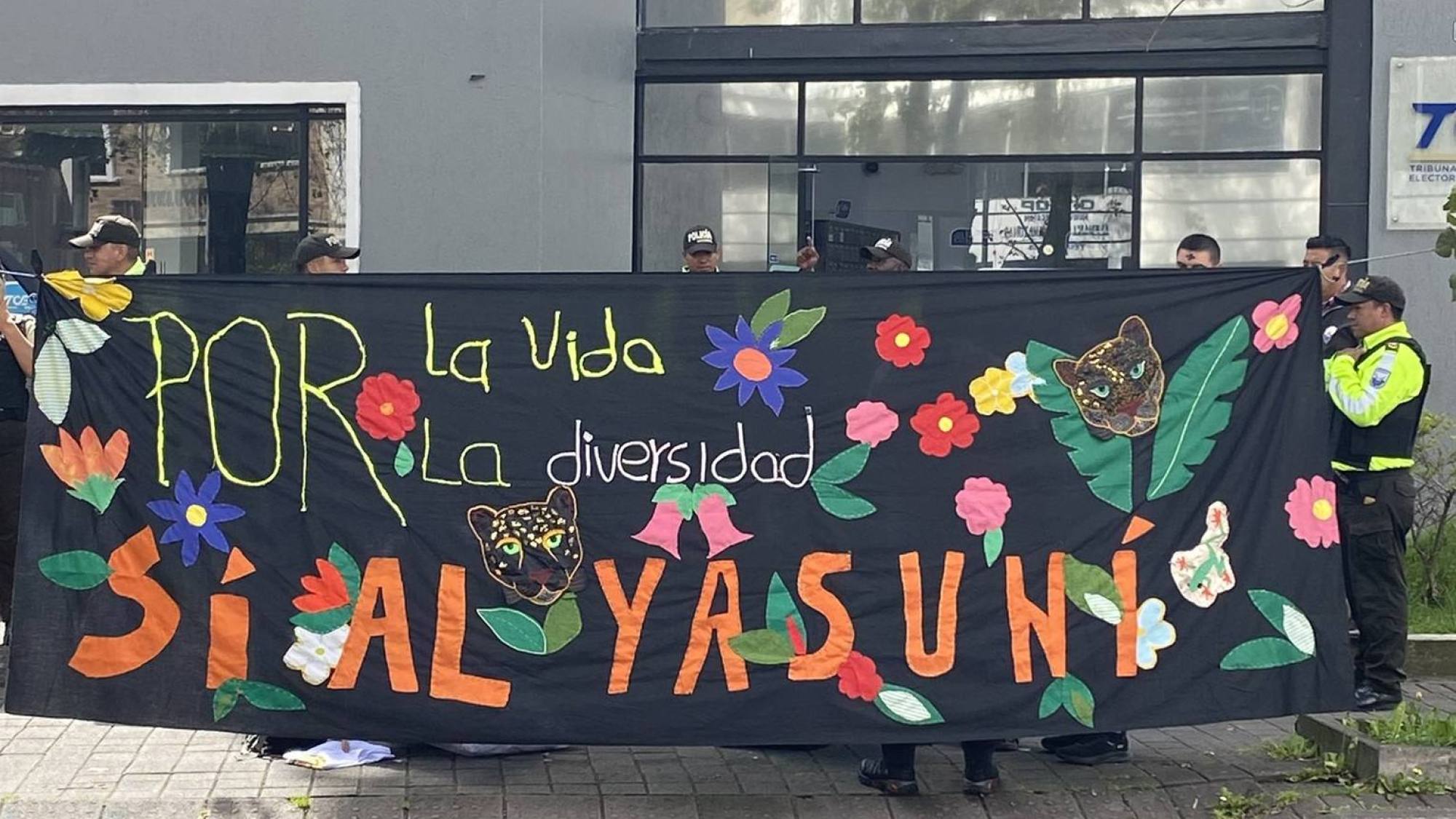 La diligencia, realizada en la sede del TCE, respondió a alegatos de irregularidades en el financiamiento de la promoción del «sí» para mantener el crudo bajo tierra en el bloque 43 del Parque Nacional Yasuní. Estuvo impulsada por el colectivo para oponerse al extractivismo petrolero.